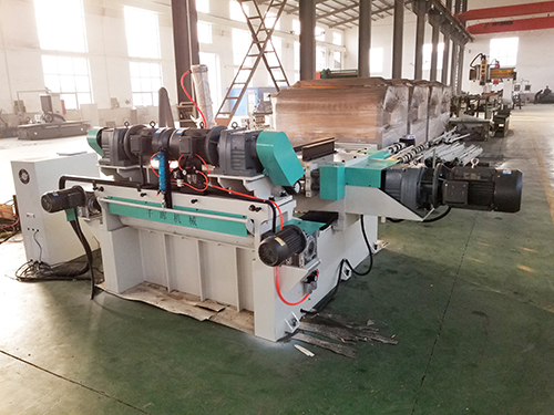 新型结构,双箱前后移动,单箱和刀台固定不动,提高了刀和刀台的稳定性,从而提高了旋切单板的厚度精确度和均匀度。